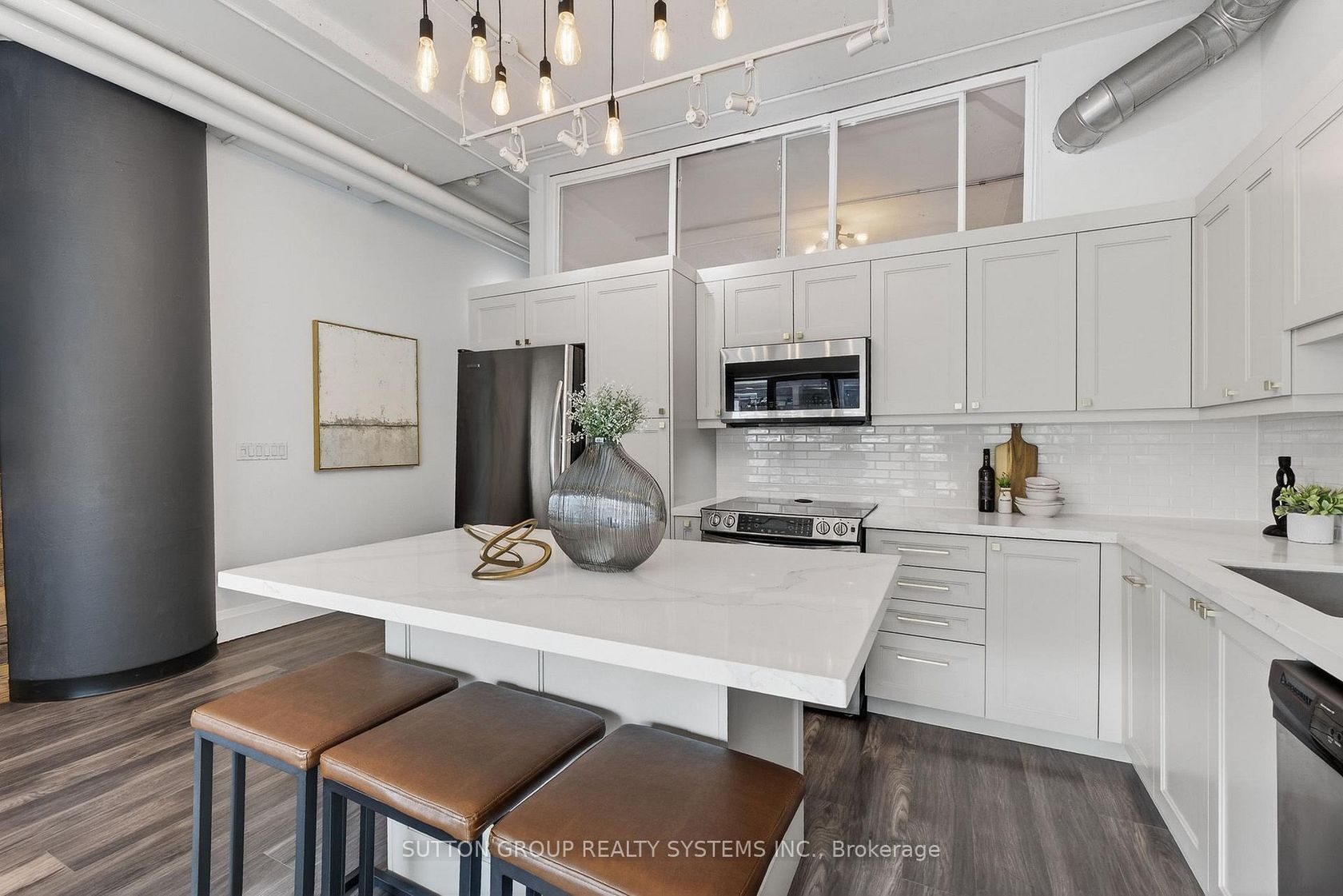Discover stylish urban living at The Network Lofts - one of Etobicoke's most unique and sought-after loft conversions in the heart of vibrant Islington Village! This rare 2nd-floor unit offers nearly 1,000 sq. ft of living space, including one of the largest and most private patios in the building (283 sq ft). Perfect for entertaining family and friends, this sun-drenched home features expansive wall-to-wall windows, soaring 10.5-ft ceilings, and a bright open-concept layout. Enjoy a brand-new custom kitchen with center island and quartz countertops, high-end wide-plank laminate flooring throughout, and authentic industrial-chic design that sets it apart from cookie-cutter condos. Other features include; an upgraded bathroom, an extra-large bedroom closet, and a Pax closet for additional storage, along with one locker and an owned covered parking spot. 24-hour concierge security in a quiet, family-oriented neighborhood. Steps to Islington Subway, close to Kipling GO, Hwy 427, and the QEW. Park right next door, with cafés, restaurants, and shopping along Bloor Street. Kingsway Village is minutes away.