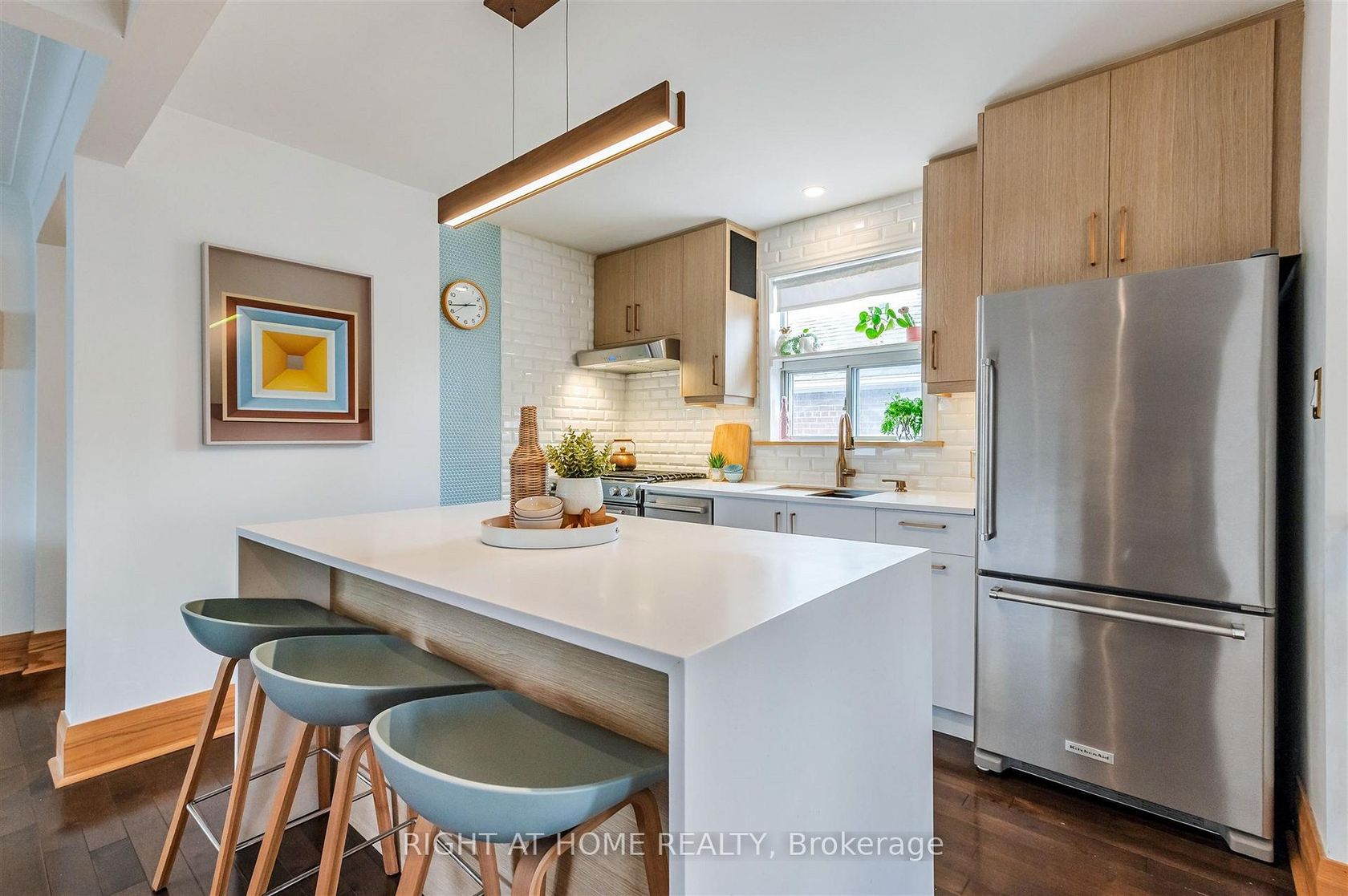 Moulded to perfection at 17 Claybrooke. This traditional post war 2-bedroom bungalow has been elevated with numerous updates over the last 10 years by owners that have been meticulous about quality restoration and renovations, making the home a true turnkey property. Claybrooke offers immediate curb appeal; greeted by an updated composite front porch as you approach the cedar sided front foyer/mudroom addition that expands the traditional living space with a bright, comfortable reading nook and plant paradise. Inside the house features an open concept custom kitchen with maple cabinetry, built in S/S appliances and a quartz waterfall island overlooking a large living and dining area. The entire main floor has hardwood flooring throughout and new 8 inch oak baseboards to recapture the home's original character. Lower level is fully finished with an oversized secondary bathroom with a double sink and in-floor heating, an additional bedroom with wall-to-wall built-in storage options, and a large home recreation area for entertaining and hanging out for family movie nights. The deep backyard has updated fencing, an oversized deck with awning coverage, and a landscaped yard complete with low maintenance, durable turf...and a kid's clubhouse! The wide lot allows for parking up to 4 vehicles in your private drive. Recent updates include: Front Foyer/Mudroom (2018); Front Porch (2019); Driveway/Fencing (2020); Landscaping (2021); Roof (2022); Rear Landscaping/Fence/Waterproofing (2023); Washer/Dryer (2025).