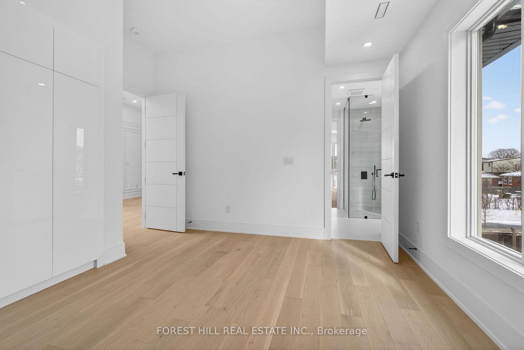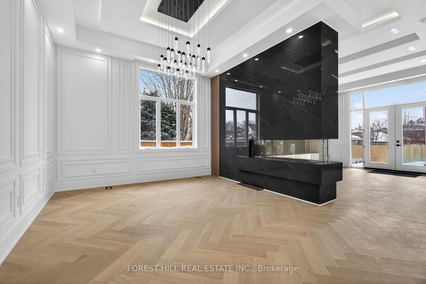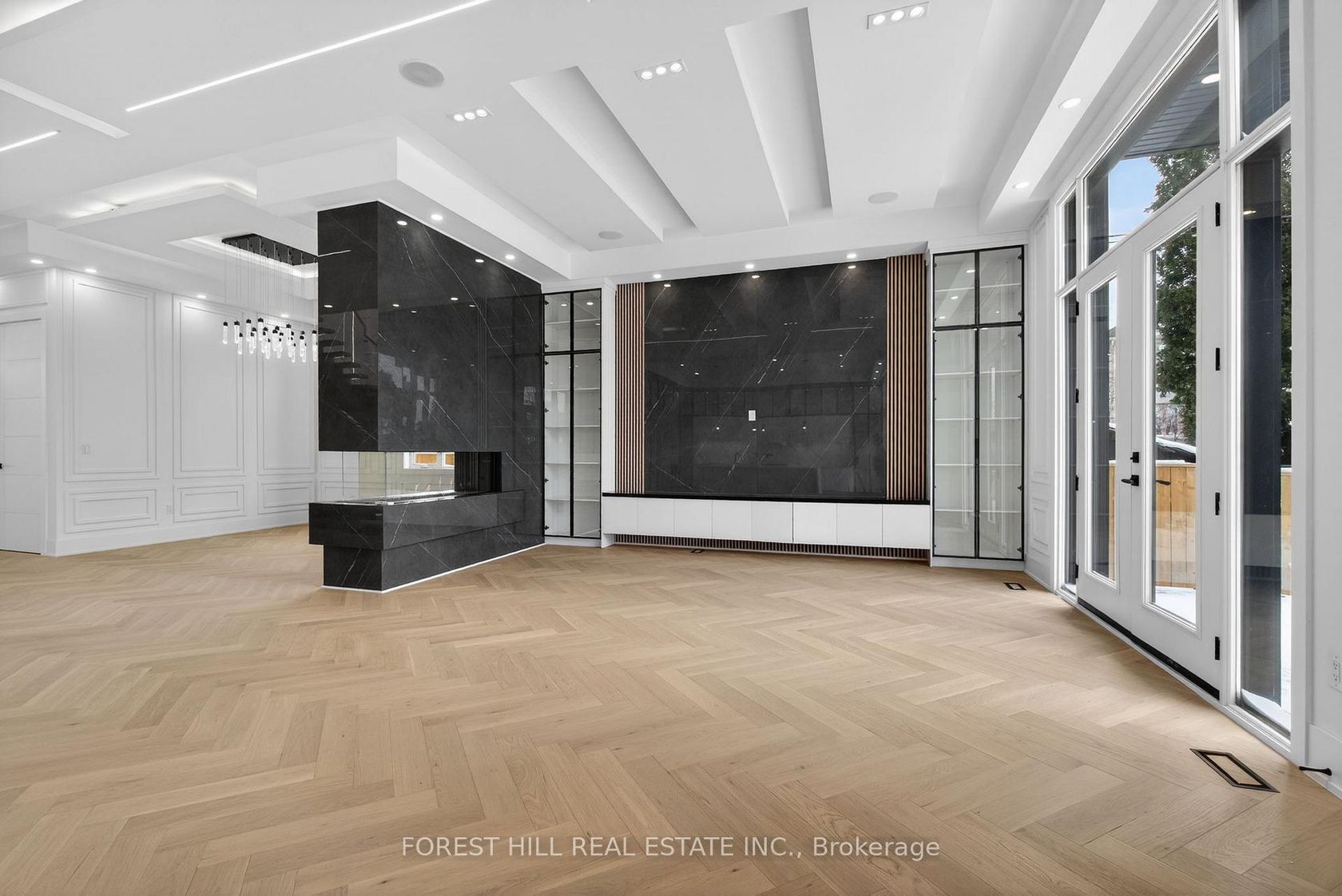 Absolutely stunning modern custom-built home in a prime Toronto location, showcasing exceptional craftsmanship and luxury designer finishes throughout. No expense spared in this architectural masterpiece featuring soaring 24-ft ceilings in the grand open-to-above foyer, dramatic custom millwork, extensive wainscoting and crown moulding, and rich herringbone-style hardwood flooring throughout. Thoughtfully designed with impeccable attention to detail, this home offers 12-ft ceilings on the main floor and 11-ft ceilings on the second floor, complemented by custom lighting, built-in surround sound, and high-end decor elements that elevate every space. The open-concept layout seamlessly blends elegance and functionality, highlighted by a stunning 3-sided fireplace connecting the dining and family rooms, a marble feature wall with custom cabinetry, and a designer chef's kitchen with premium panelled JennAir appliances, Wolf cooking package, oversized centre island, and a fully equipped walk-in pantry. Walk out to a beautifully finished composite deck and private patio, perfect for outdoor entertaining. Additional features include a Cambridge elevator servicing all levels, a custom floating wood staircase with glass railing, a main floor office with floor-to-ceiling windows, and a mudroom with built-in storage and marble finishes. The second level offers spacious bedrooms with ensuites and a luxurious primary retreat with fireplace, balcony, spa-inspired 5-piece ensuite, and custom walk-in closet. The fully finished lower level includes a separate apartment setup with walkout, full kitchen, additional bedrooms, recreation space with bar, and second laundry. Complete with 400-amp service, two tankless water heaters, and a total of 7 bedrooms and 8 bathrooms, this extraordinary residence delivers unparalleled luxury living inside and out, all within close proximity to Yorkdale Mall, Allen Road, and Highway 401.